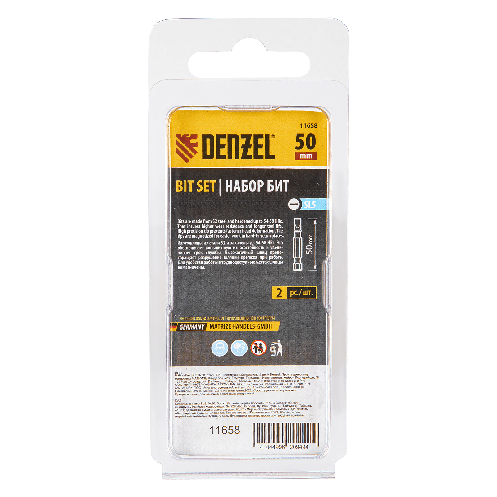 Набор бит SL 5,0 х 50 мм Denzel 11658 включает в себя 2 сменные насадки из стали S2 для шуруповертов и отверток-адаптеров с присоединительным шестигранником 1/4"". Биты со шлицами «минус» размером 5 мм применяются при монтаже и демонтаже резьбовых соединений: винтов, саморезов и др.