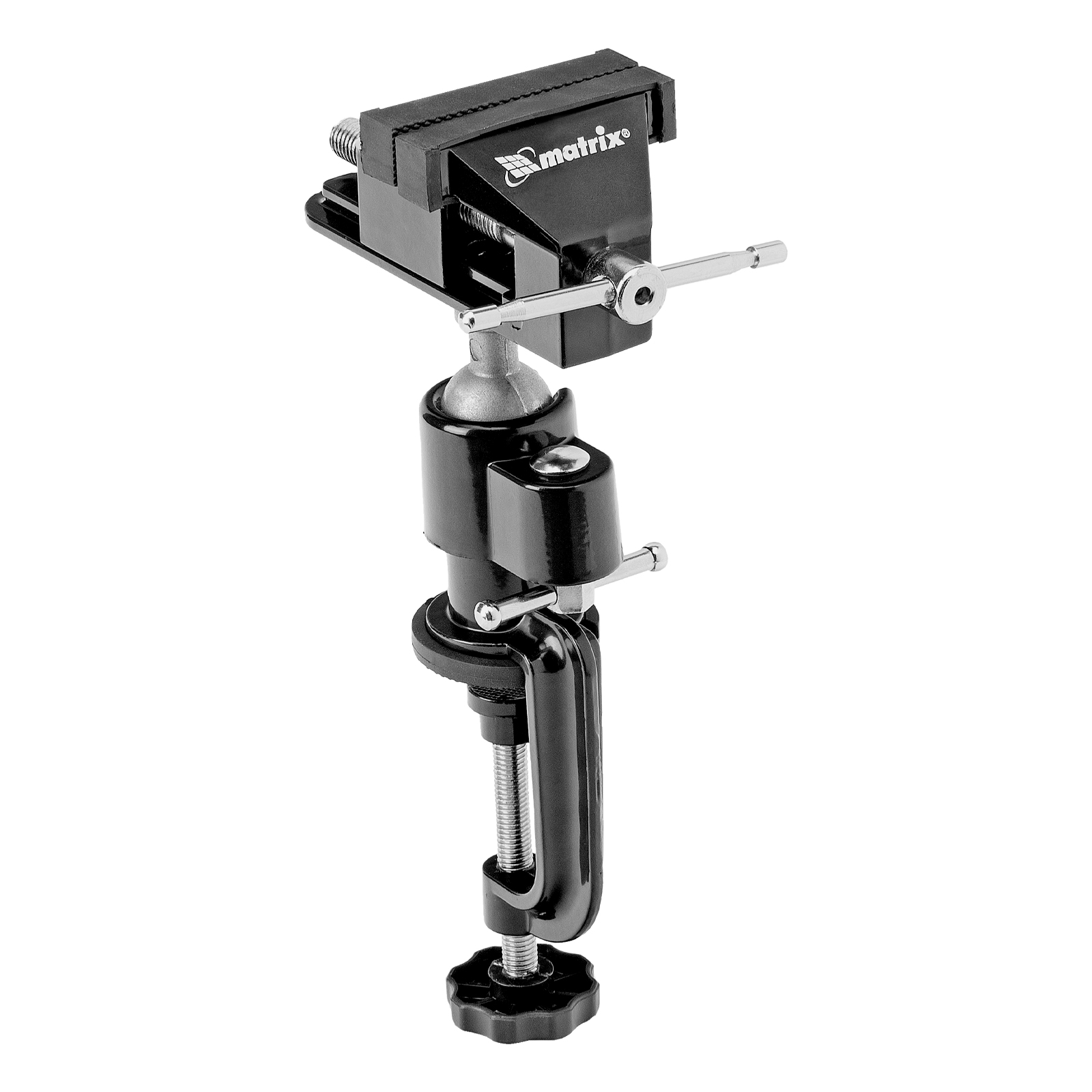Настольные тиски Matrix 18506 с резиновой вакуумной присоской и шарнирным механизмом, имеют рабочие губки шириной 70 мм и используются для фиксации обрабатываемых деталей. Максимальное расстояние между губками составляет 68 мм, что позволяет закреплять небольшие заготовки для выполнения ювелирных, ремонтных и других тонких работ.